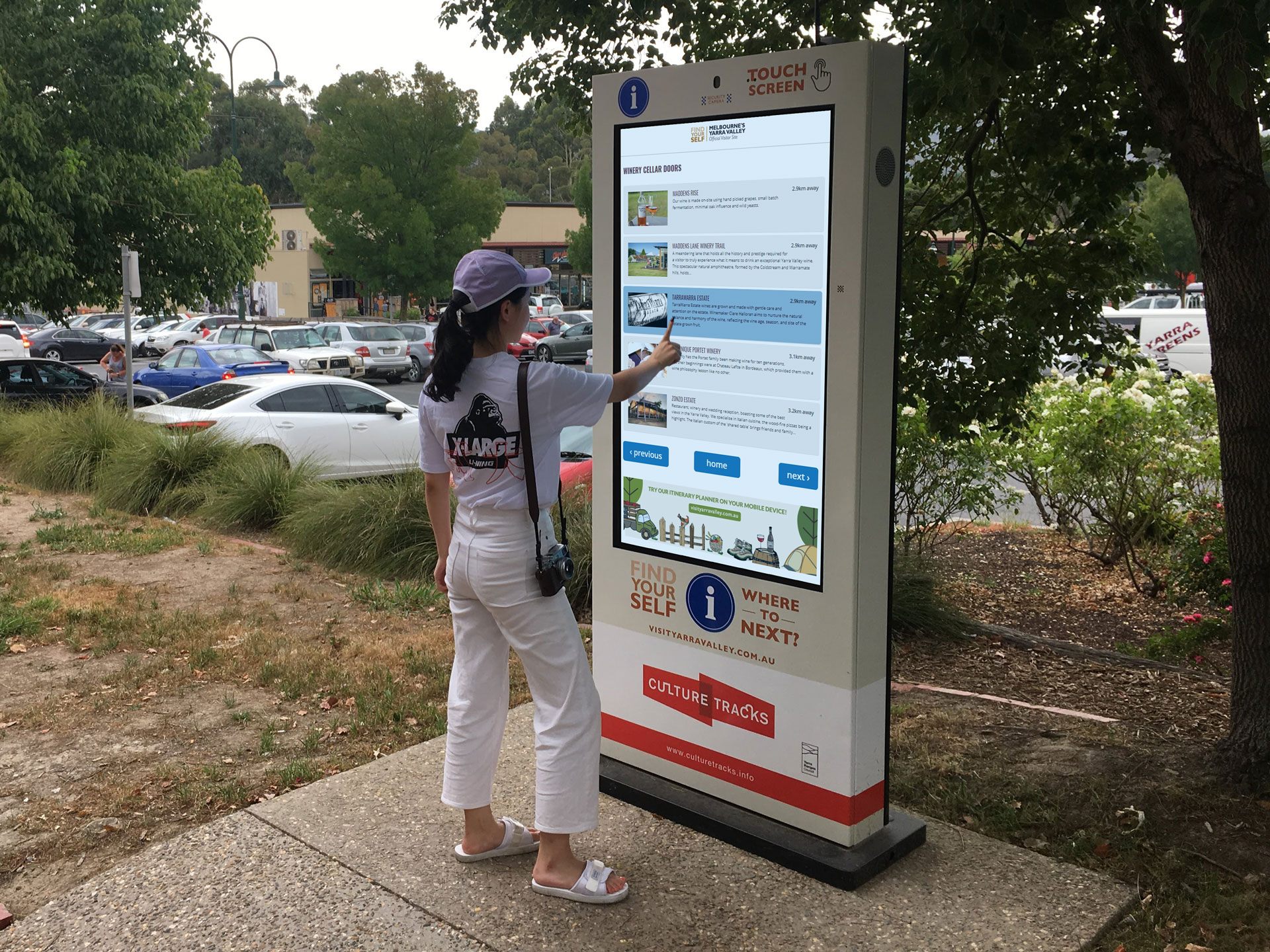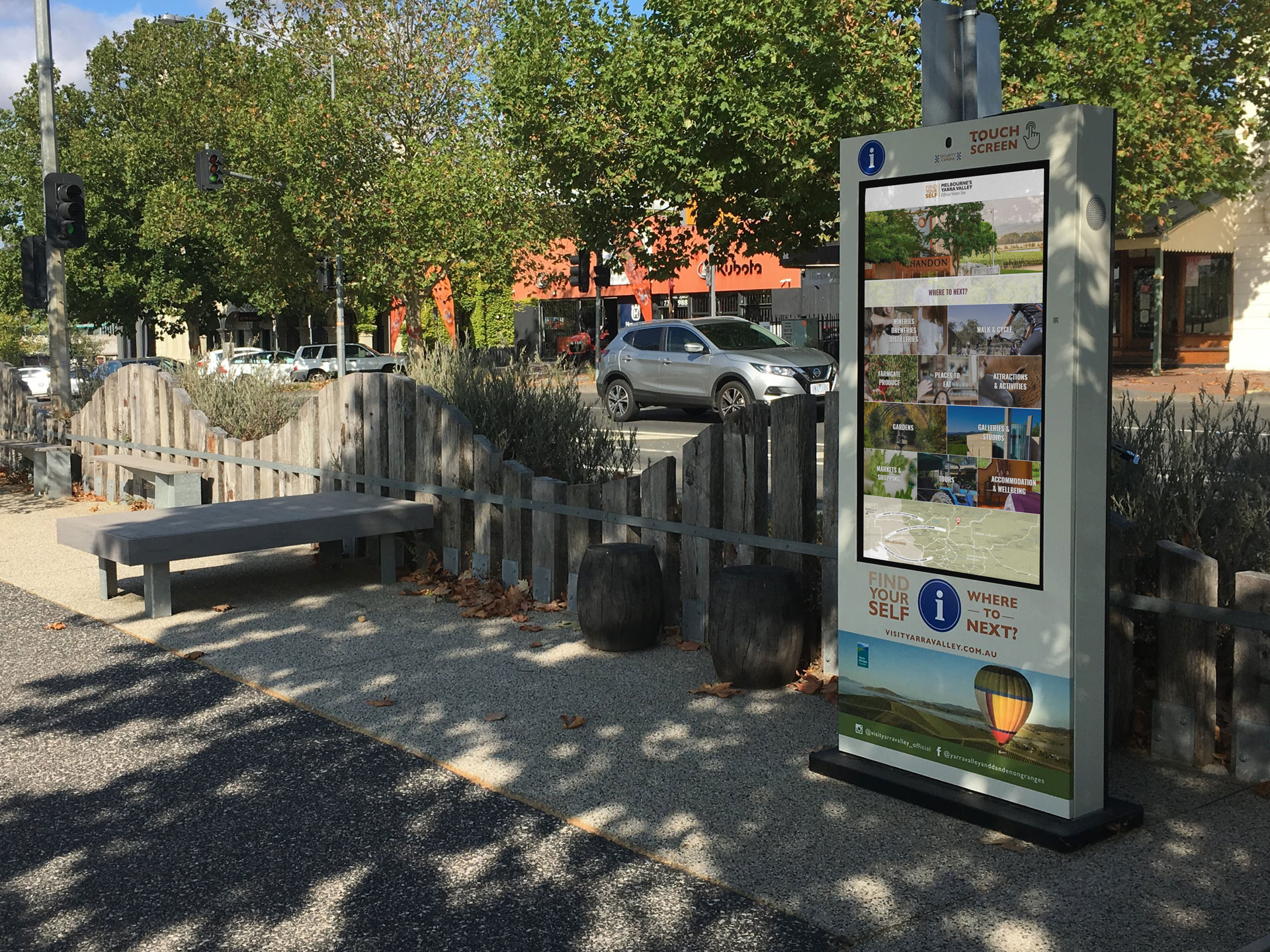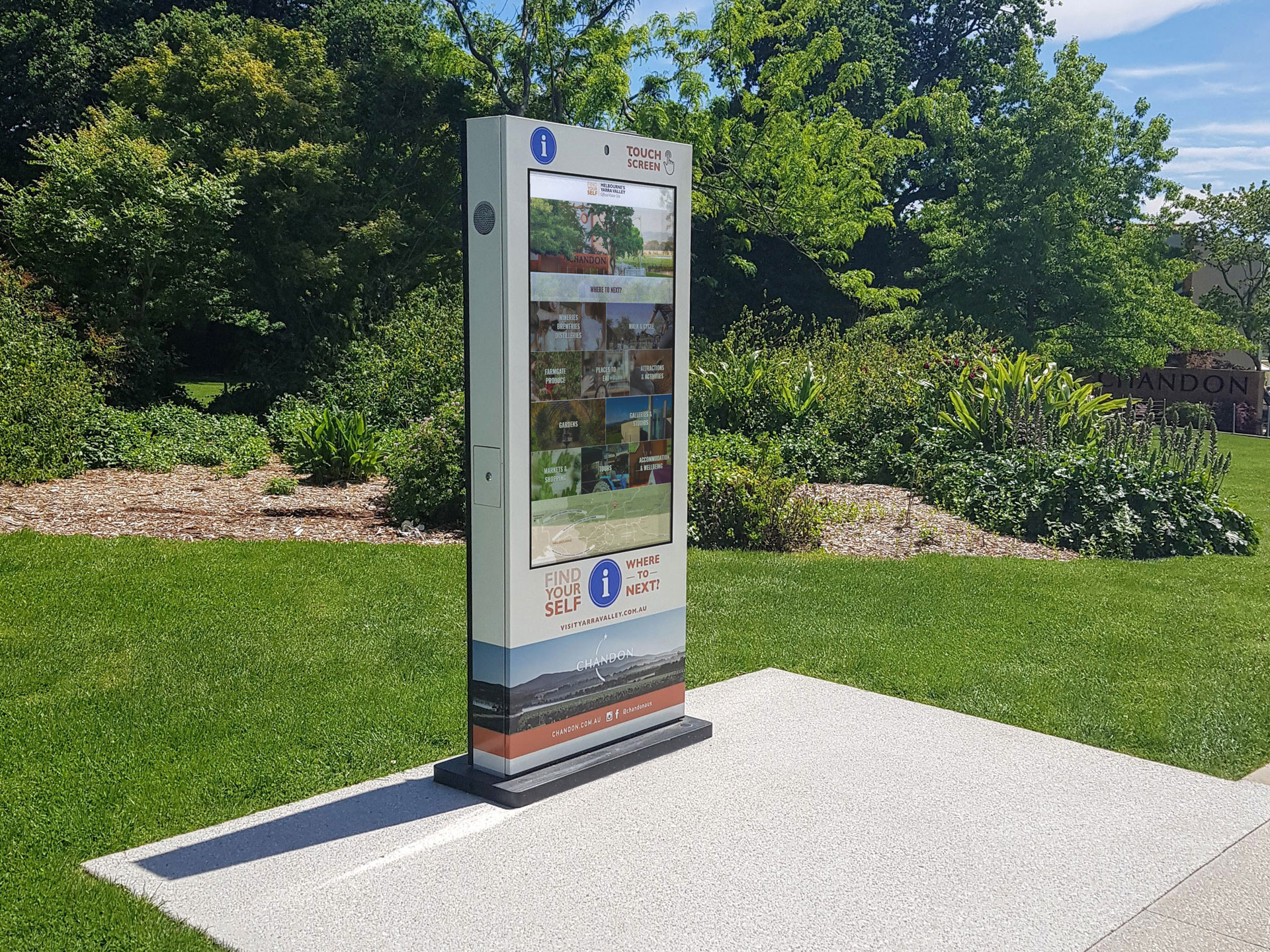 These digital Wayfinder kiosks allow visitors to search for nearby stores, explore tours, events, and activities and plan their next trip to Yarra Valley.